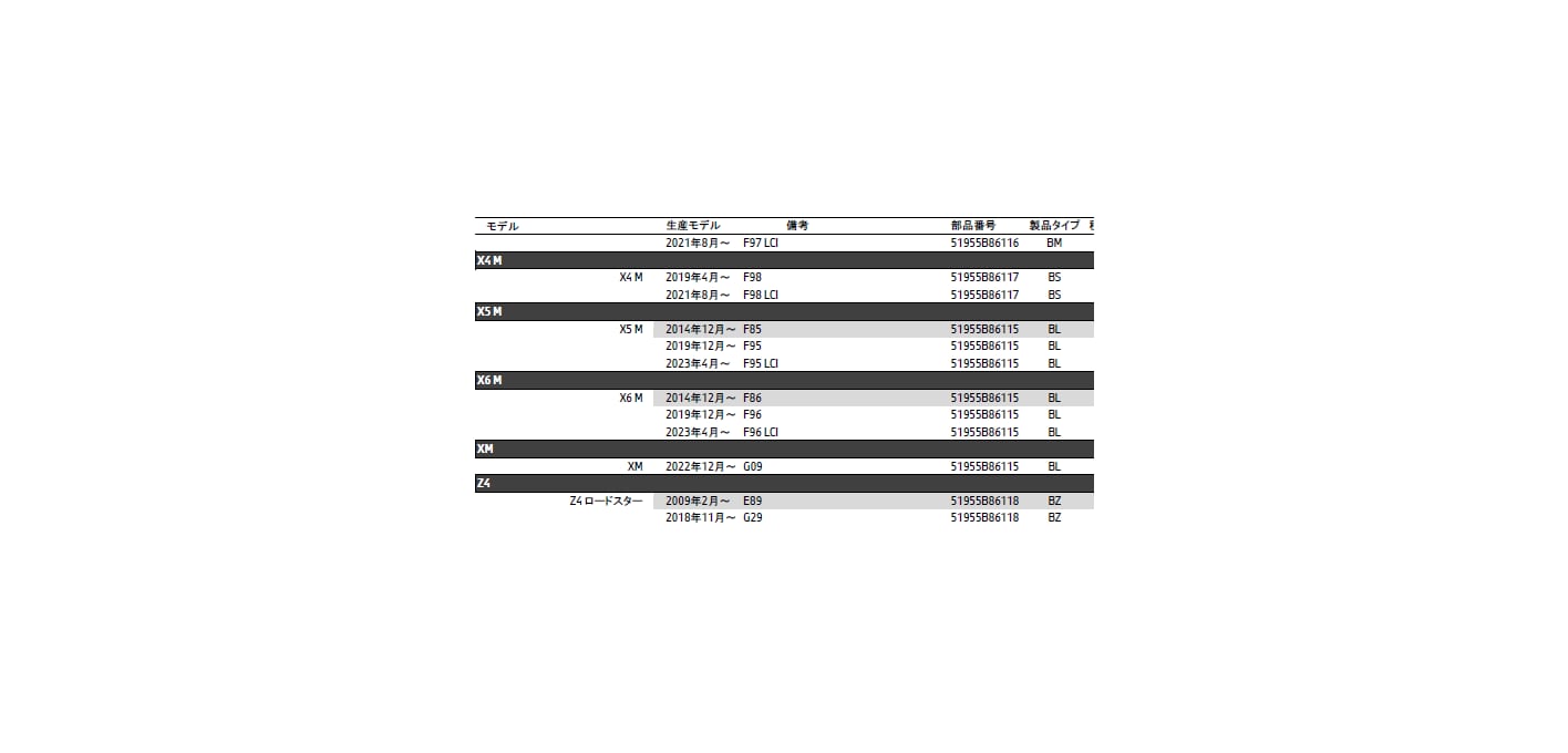 適合は画像4枚目以降を参考に選択ください。(BI.BF.BXは価格が違いますので別商品となります)